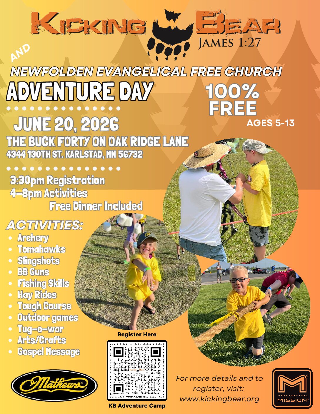 All kiddos preregistered will have two entries in our drawing for a new Mission or Genesis bow from Mathews!