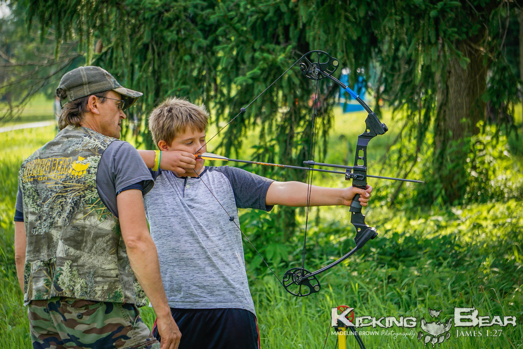 Kicking Bear Camps are completely free, fun-filled, family events that are open to the public. This provides a great opportunity to invite all community members for a free family outing and introduce youth to Christ, archery, and the outdoors. A Kicking Bear Camp is an outlet for struggling youth to escape their trouble at home and have an absolute blast making new friends and learning new skills. At the camp, we are able to learn more about the struggles a kid may be going through and pair them with a mentor.