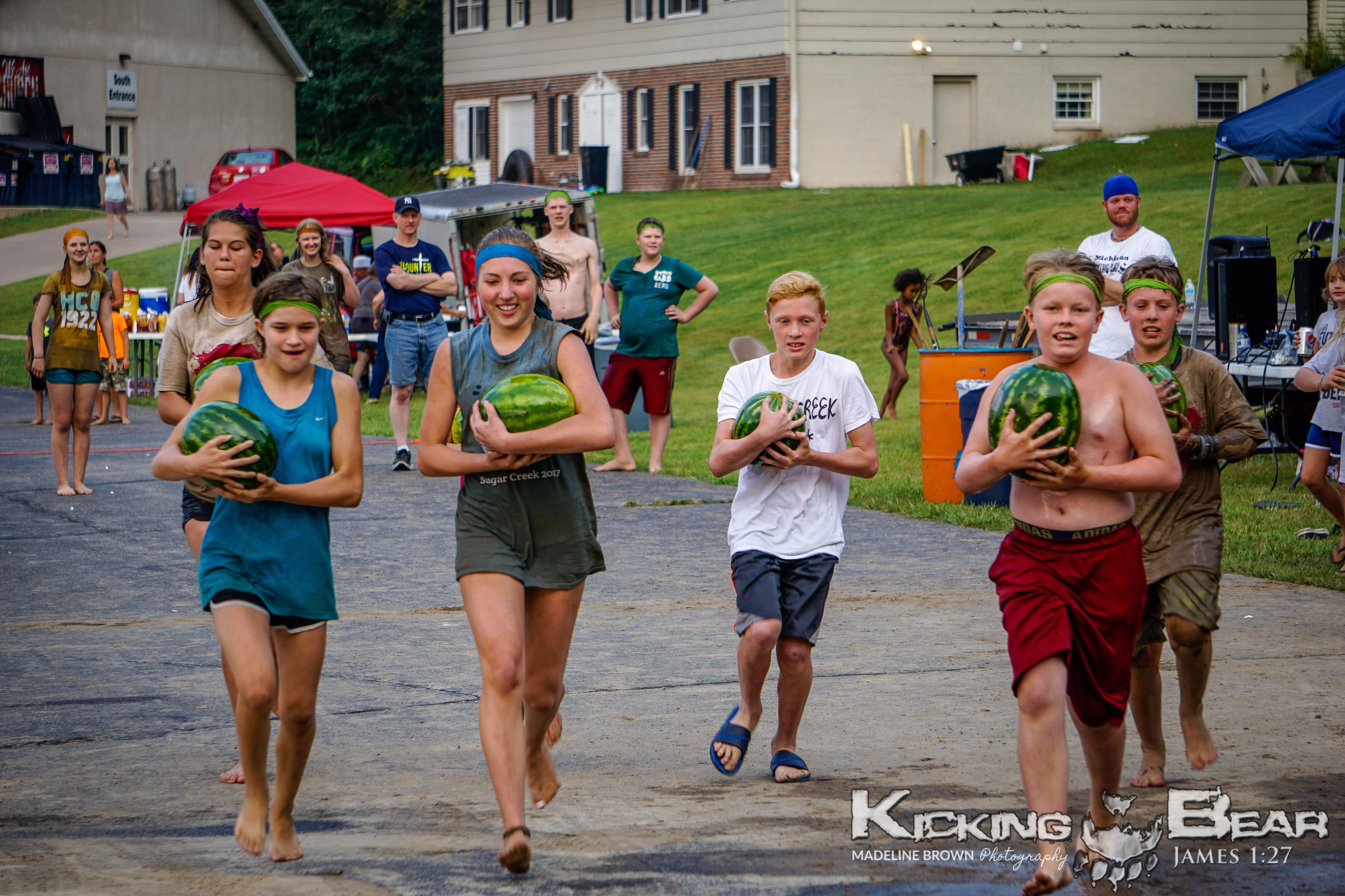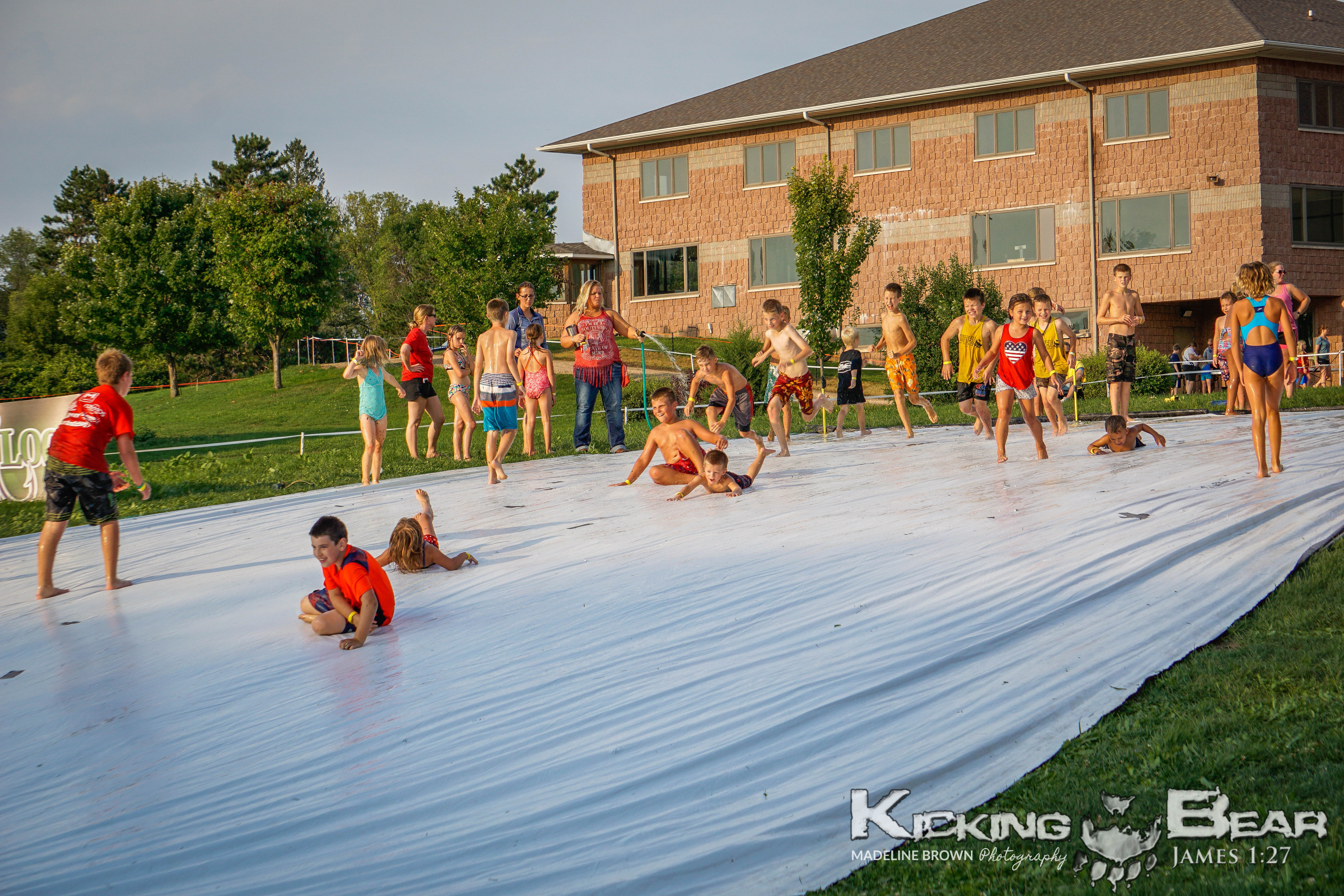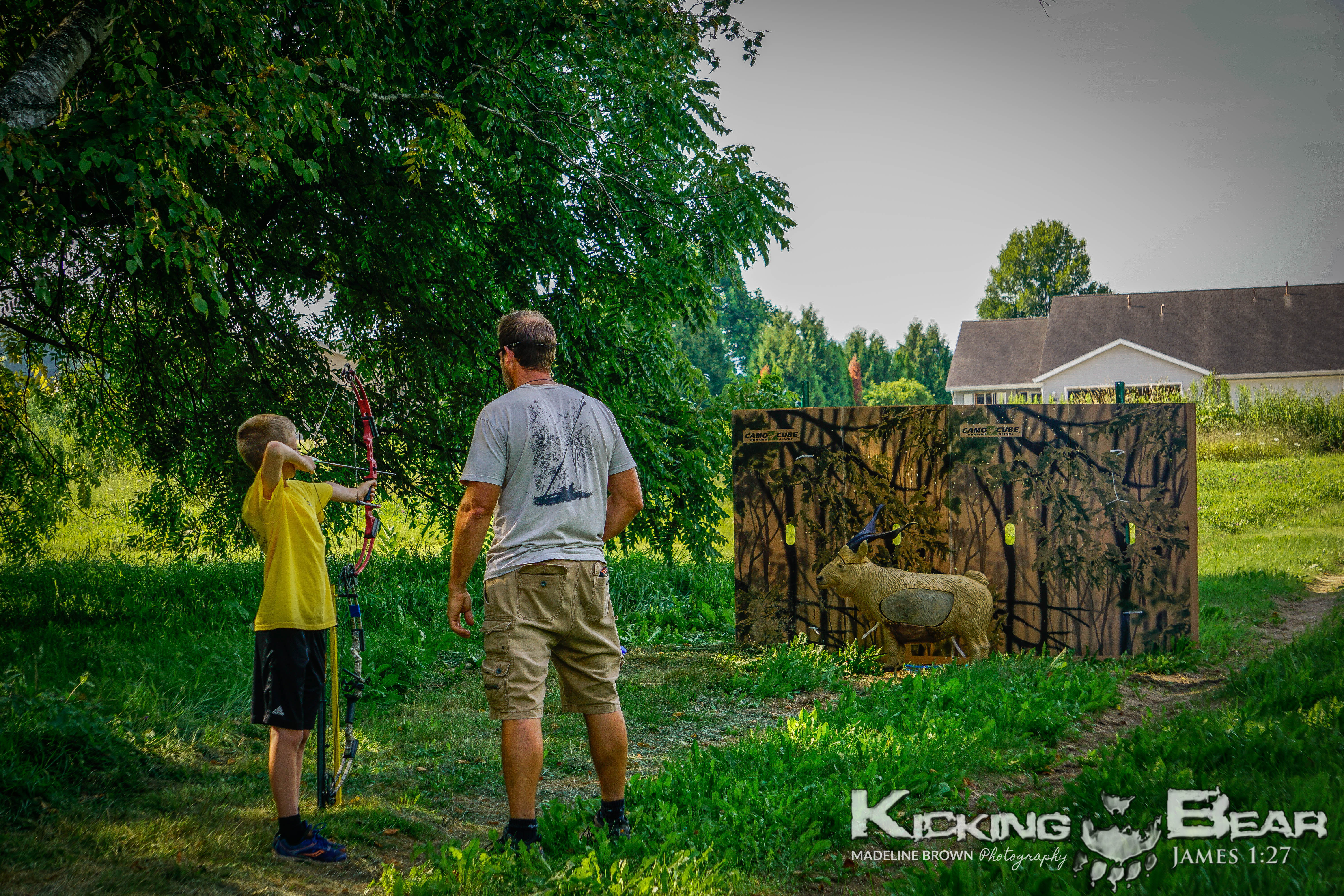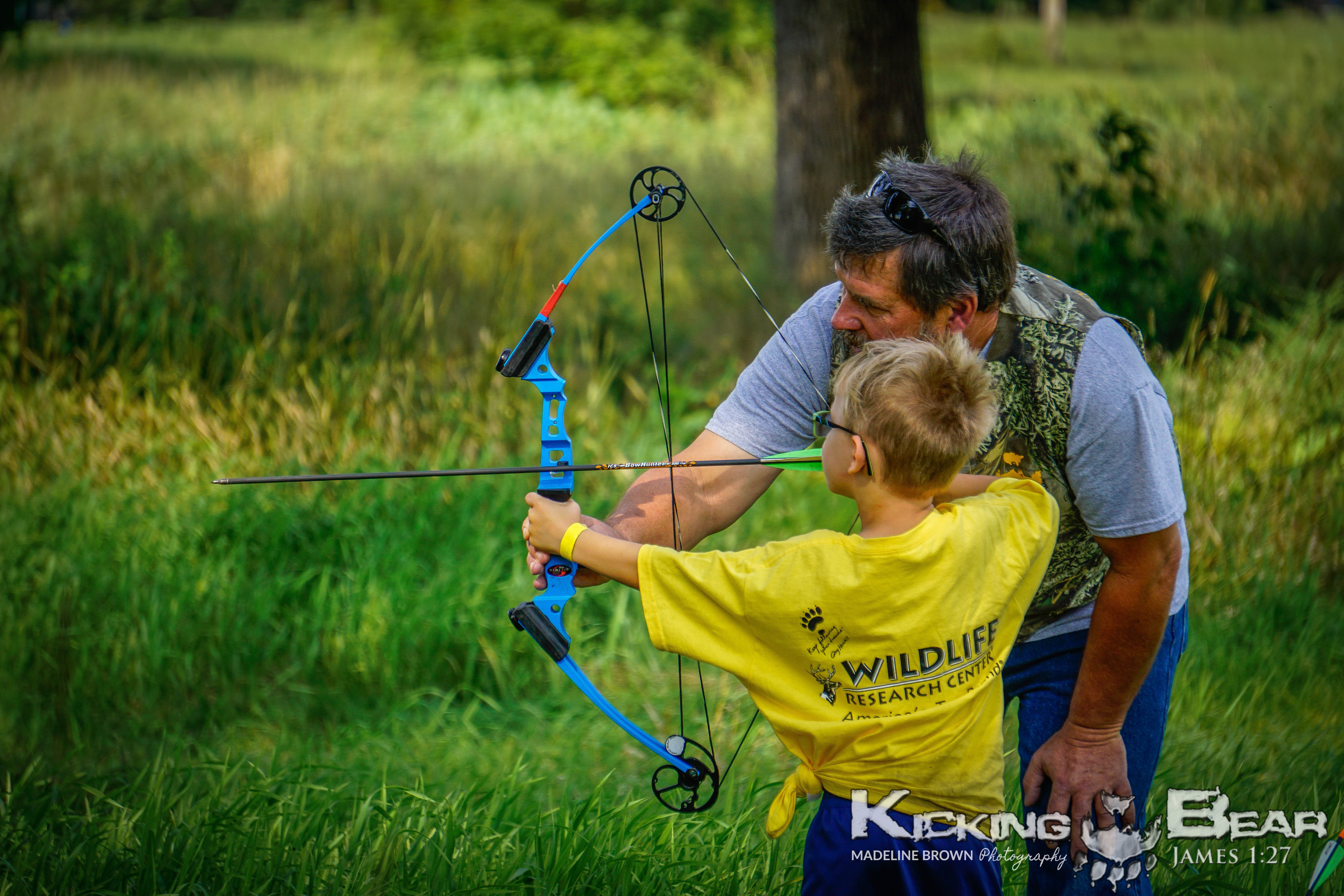 Our new format of one day camps has been a huge success over the past couple years!  Families are invited to take part in archery, bb-guns, giant waterslides, arts and crafts, tomahawk throwing, KB tough course, field games and of course an epic marshmallow fight!  There are usually snacks or a meal provided and there will ALWAYS be a sharing of the gospel message.  The heart of Kicking Bear Ministries is to put a bow in a kids hand and lead them to Jesus!  A Kicking Bear Camp is a great way to do just that!  Hope to see you at a camp soon!