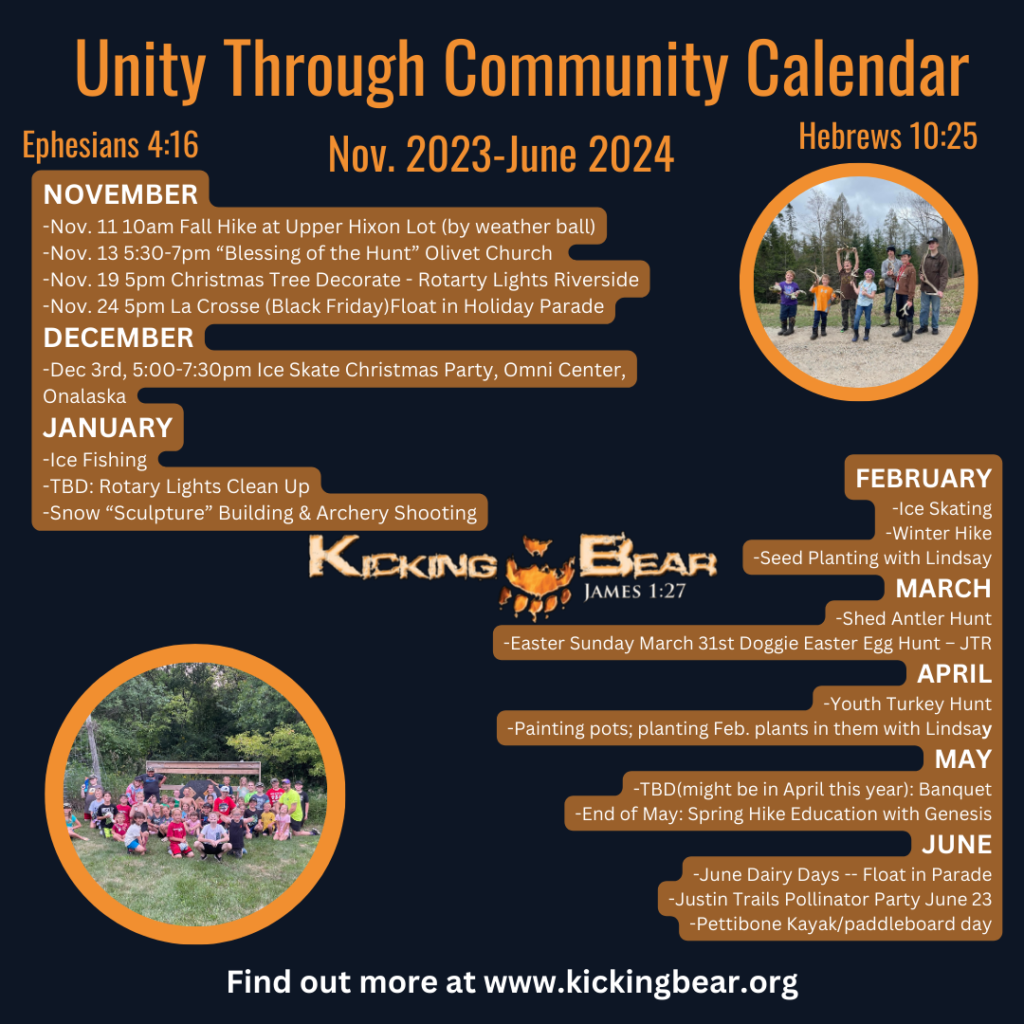 Questions or to partner with us for an event email Chrissy@kickingbear.org